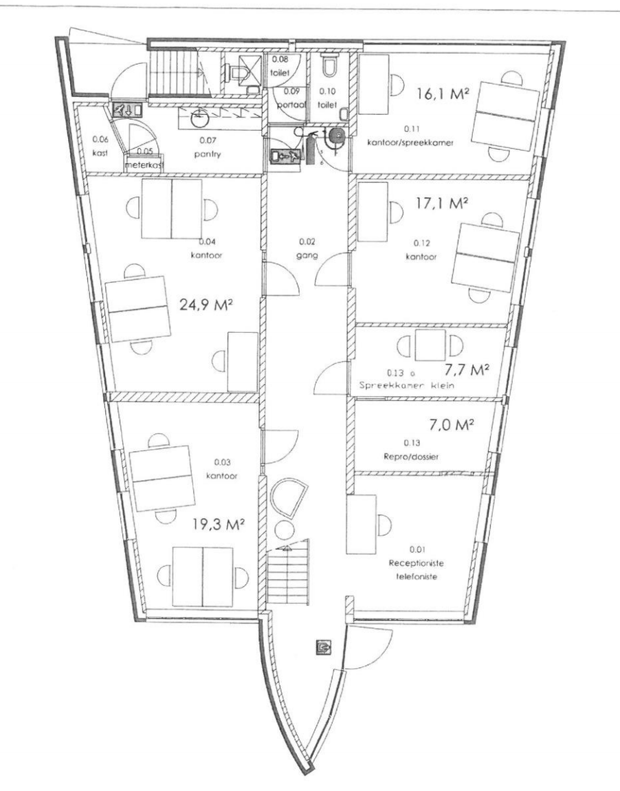 - Kantoorruimte van ca. 16 m2 gelegen op de begane grond.