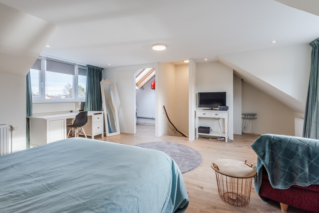 De eerste verdieping telt drie comfortabele slaapkamers en een moderne badkamer. De tweede verdieping verrast met een grote open zolderruimte waar een vierde slaapkamer is gerealiseerd. Aan weerszijden zorgen dakkapellen voor extra ruimte en licht, met daarnaast praktische bergruimte achter de knieschotten. Ook vindt u hier een afgesloten wasruimte en de opstelplaats van de cv-installatie, compleet met dakraam.