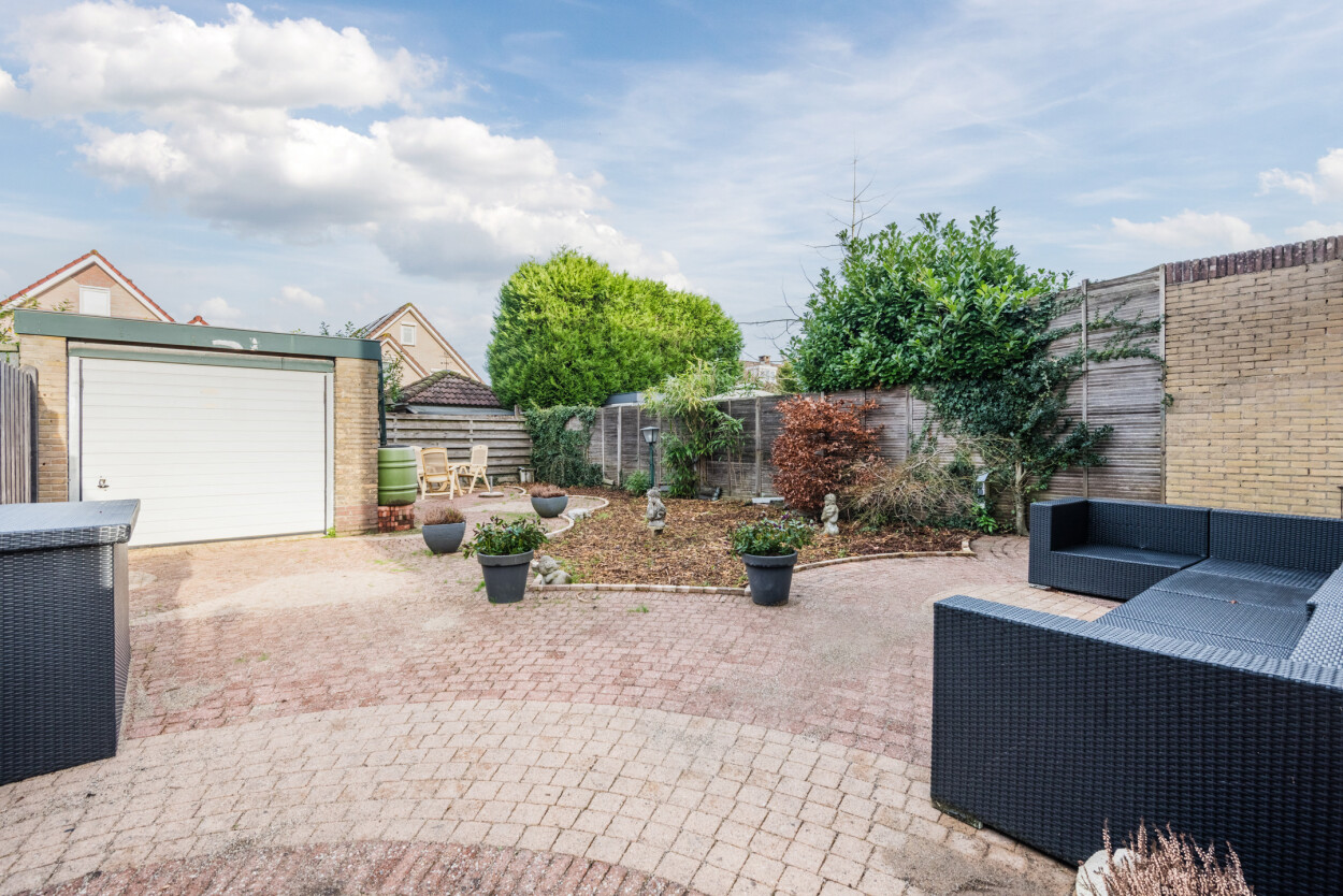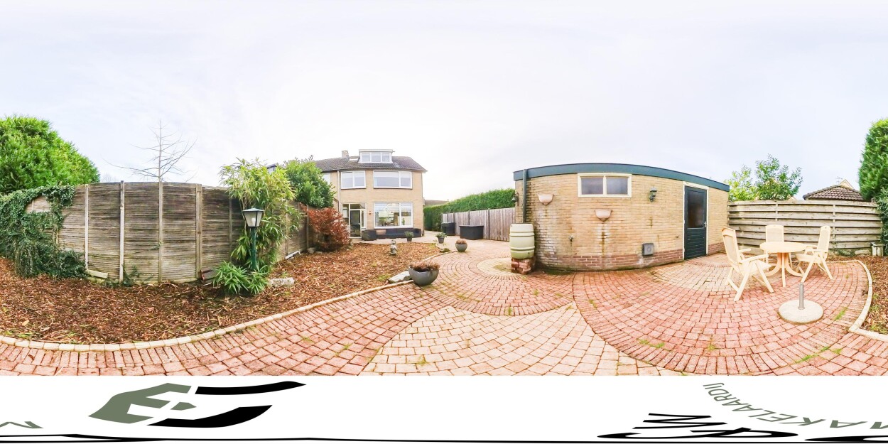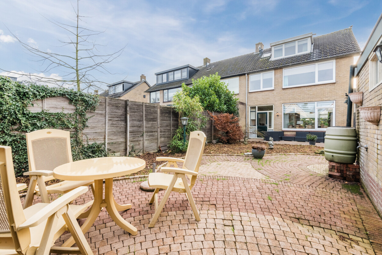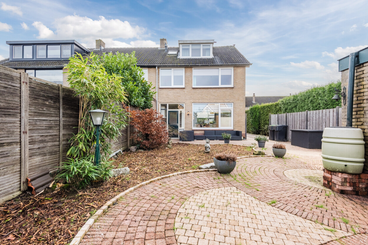 De achtertuin, gelegen op het noorden, is keurig aangelegd en biedt met een diepte van ca. 12 meter meerdere terrassen om op elk moment van de dag te genieten. Vanuit de tuin heeft u directe toegang tot zowel de zijtuin als de vrijstaande garage, voorzien van een kanteldeur en een aparte loopdeur.
