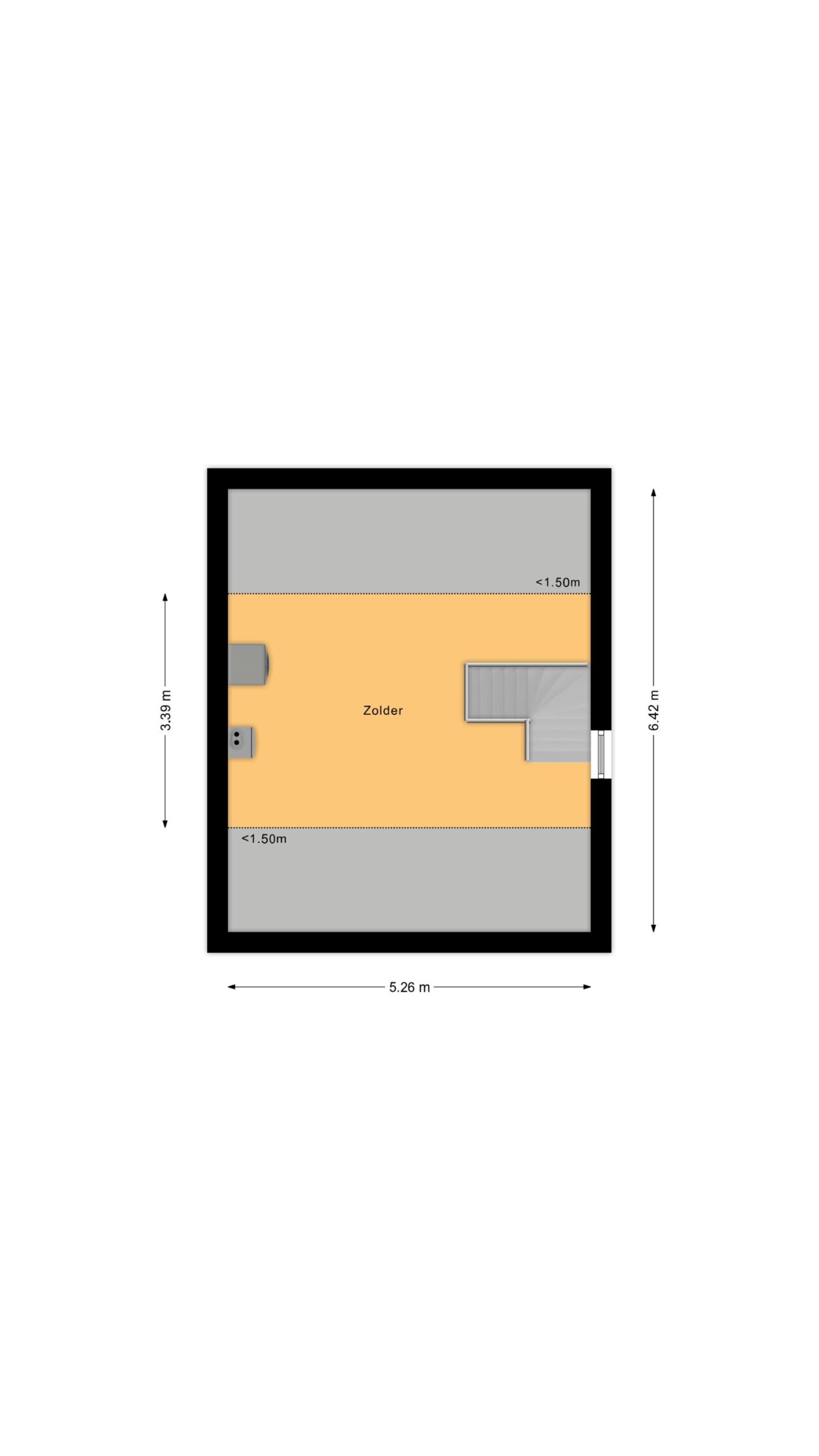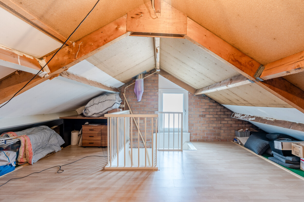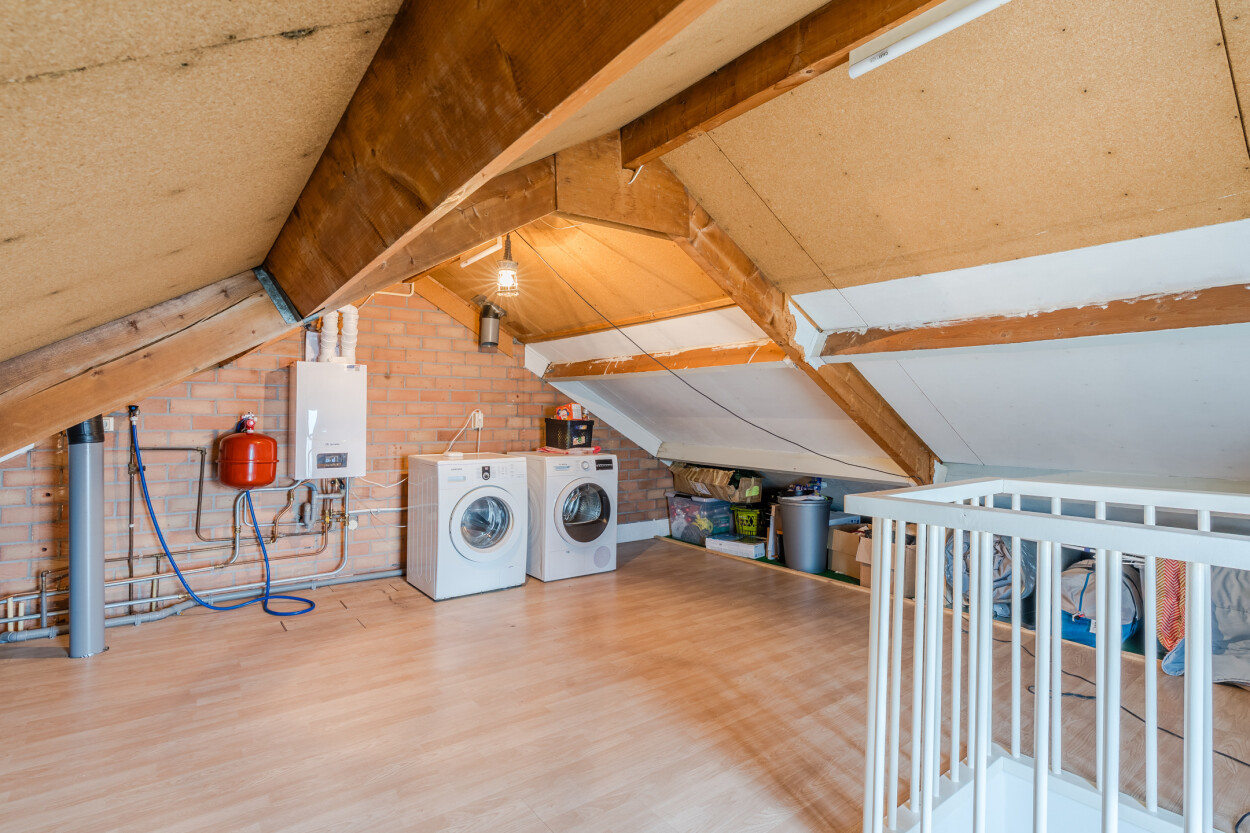 Via een vaste trap bereikt u de tweede verdieping. Deze ruimte wordt momenteel gebruikt als bergzolder en herbergt de cv-installatie, wasmachine en droger. Door het plaatsen van een dakkapel biedt deze verdieping veel mogelijkheden om, helemaal naar eigen wens en smaak, afgewerkt te worden. Zo creëert u eenvoudig een extra slaap- of hobbykamer met volop licht en ruimte.