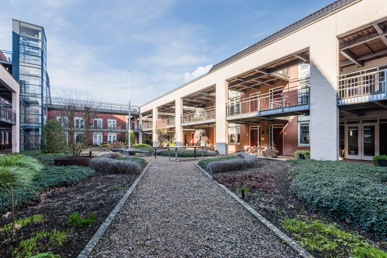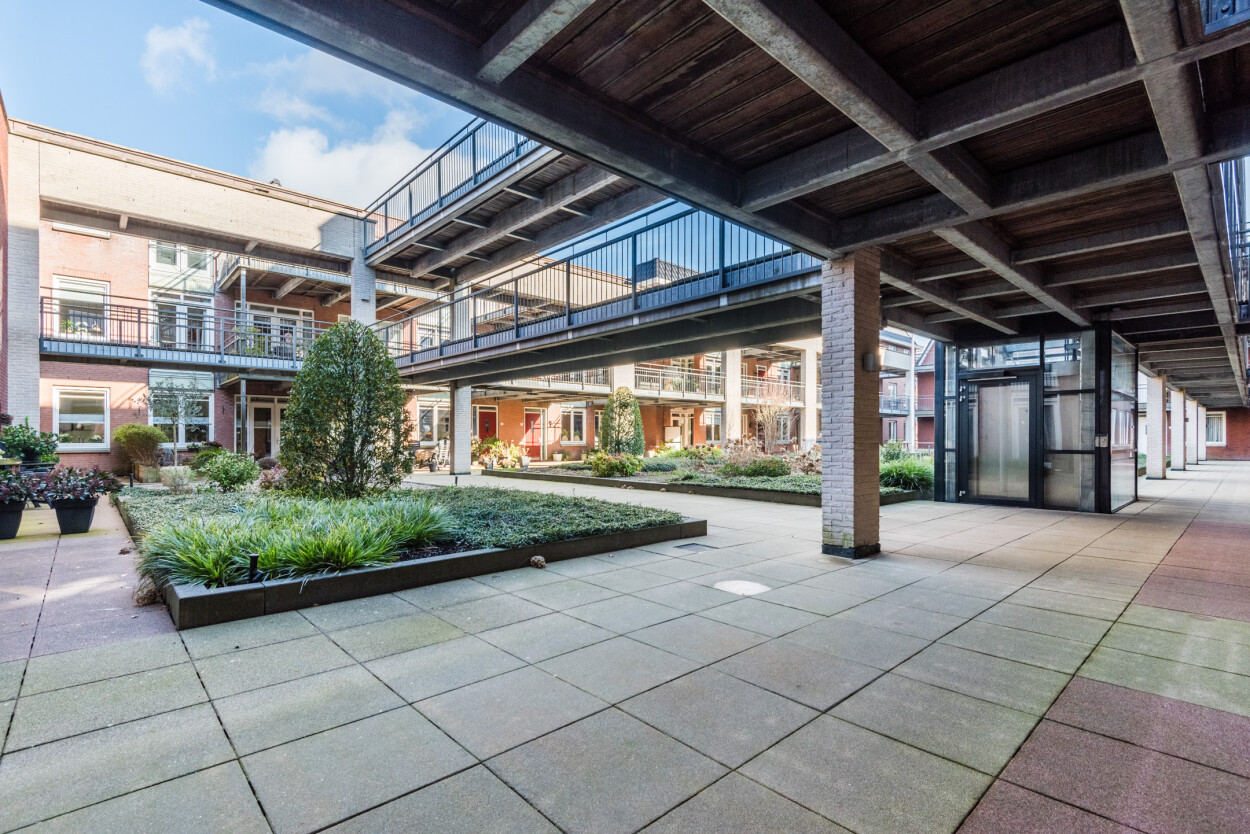 Als bewoner maakt u gebruik van de prachtig aangelegde, gemeenschappelijke binnentuin. Deze rustige en groene buitenruimte is uitsluitend toegankelijk voor bewoners en vormt een fijne plek om te ontspannen of elkaar te ontmoeten. De binnentuin is bereikbaar per lift vanuit de parkeerkelder én via de galerijen.