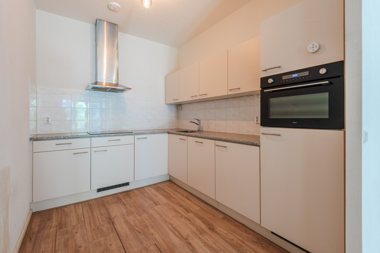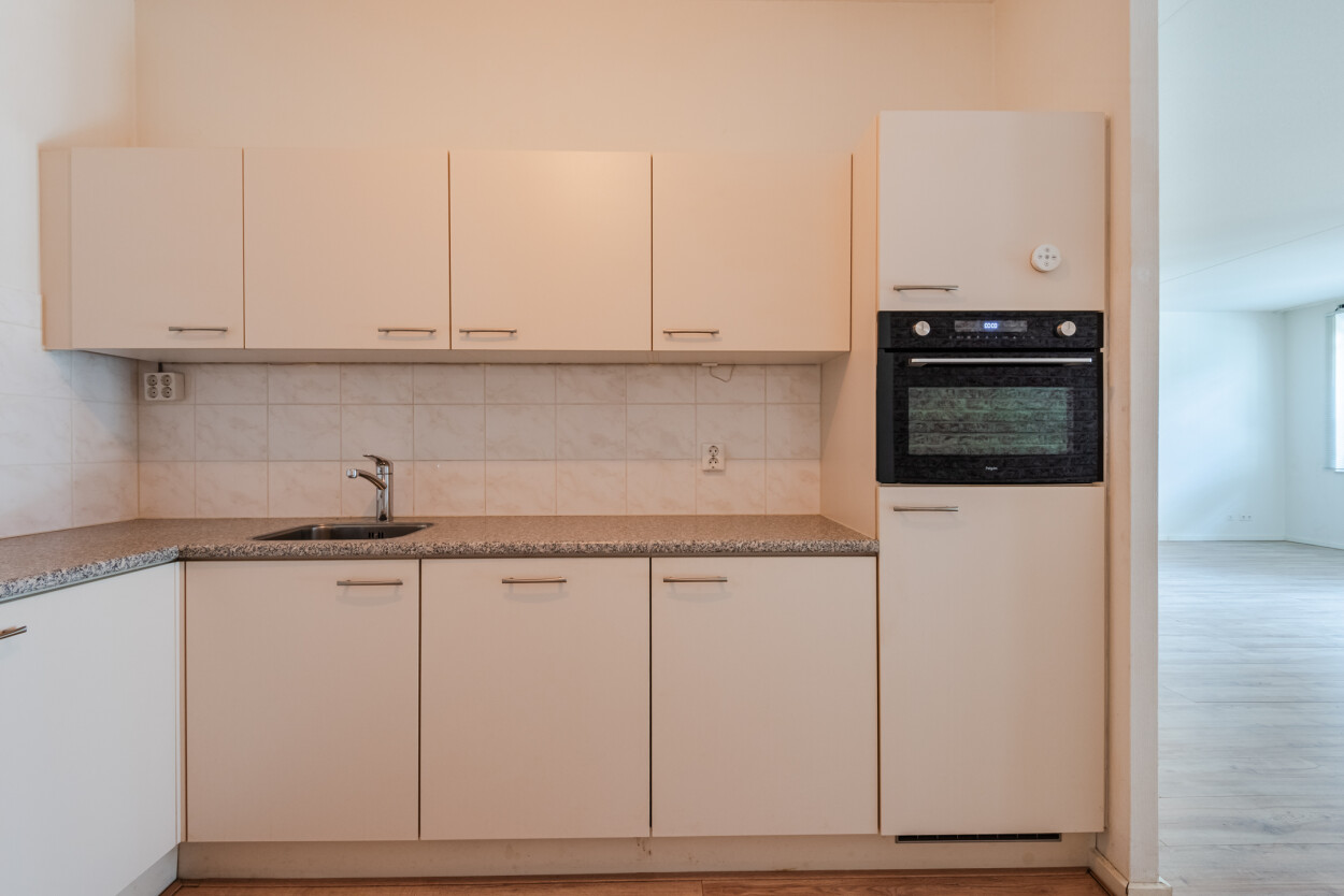 Via de galerij bereikt u de entree van het appartement. De hal biedt toegang tot de meterkast en een separaat toilet met fonteintje. De ruime woonkamer heeft directe toegang tot het terras aan de galerijzijde. De open keuken is uitgevoerd in een praktische hoekopstelling en voorzien van diverse inbouwapparatuur, waaronder een koelkast, combimagnetron, vaatwasser, afzuigkap en een 4-pits inductiekookplaat. De inpandige berging is zeer praktisch ingericht met aansluitingen voor wasmachine en droger. Hier bevinden zich tevens de luchtwarmtepomp en de verdeler van de vloerverwarming. De badkamer is voorzien van een vaste wastafel, douche en een tweede toilet. Aan de noordzijde (achterzijde) van het appartement bevinden zich twee royale slaapkamers, die beide toegang bieden tot het balkon aan de achterzijde.