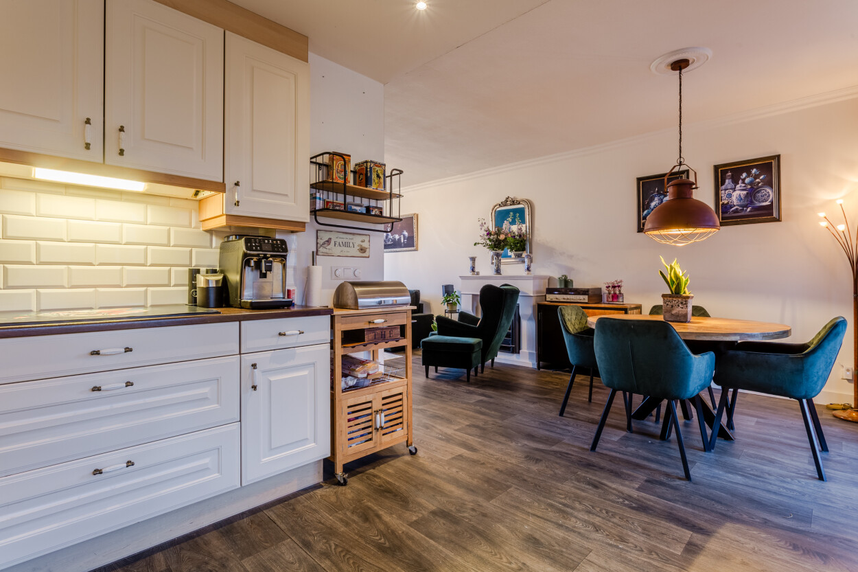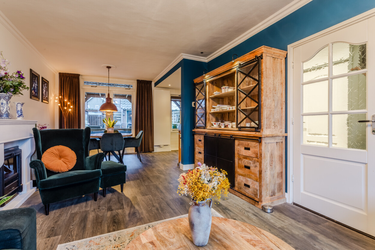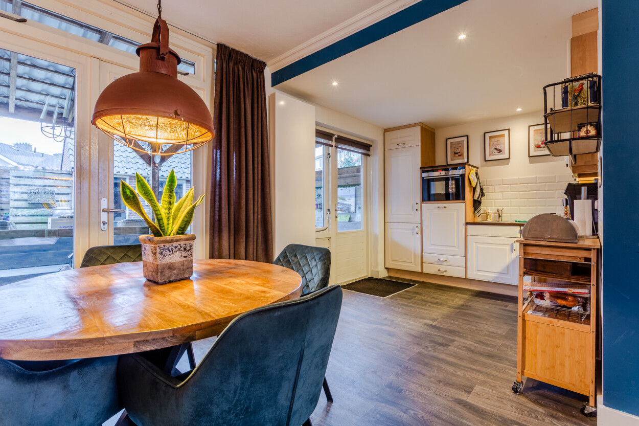 Bij binnenkomst ervaart u direct de prettige en huiselijke sfeer. De woonkamer staat in open verbinding met het eetgedeelte, waar u samenkomt met familie en vrienden. De keuken sluit hier naadloos op aan. De openslaande deuren naar de achtertuin zorgen voor veel lichtinval en maken van het eetgedeelte een mooi verlengstuk van de leefruimte, waardoor binnen en buiten op een natuurlijke manier in elkaar overlopen.