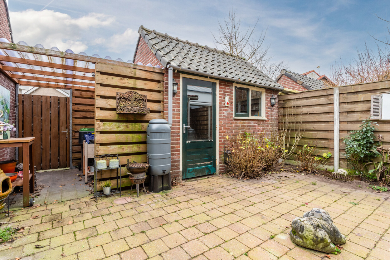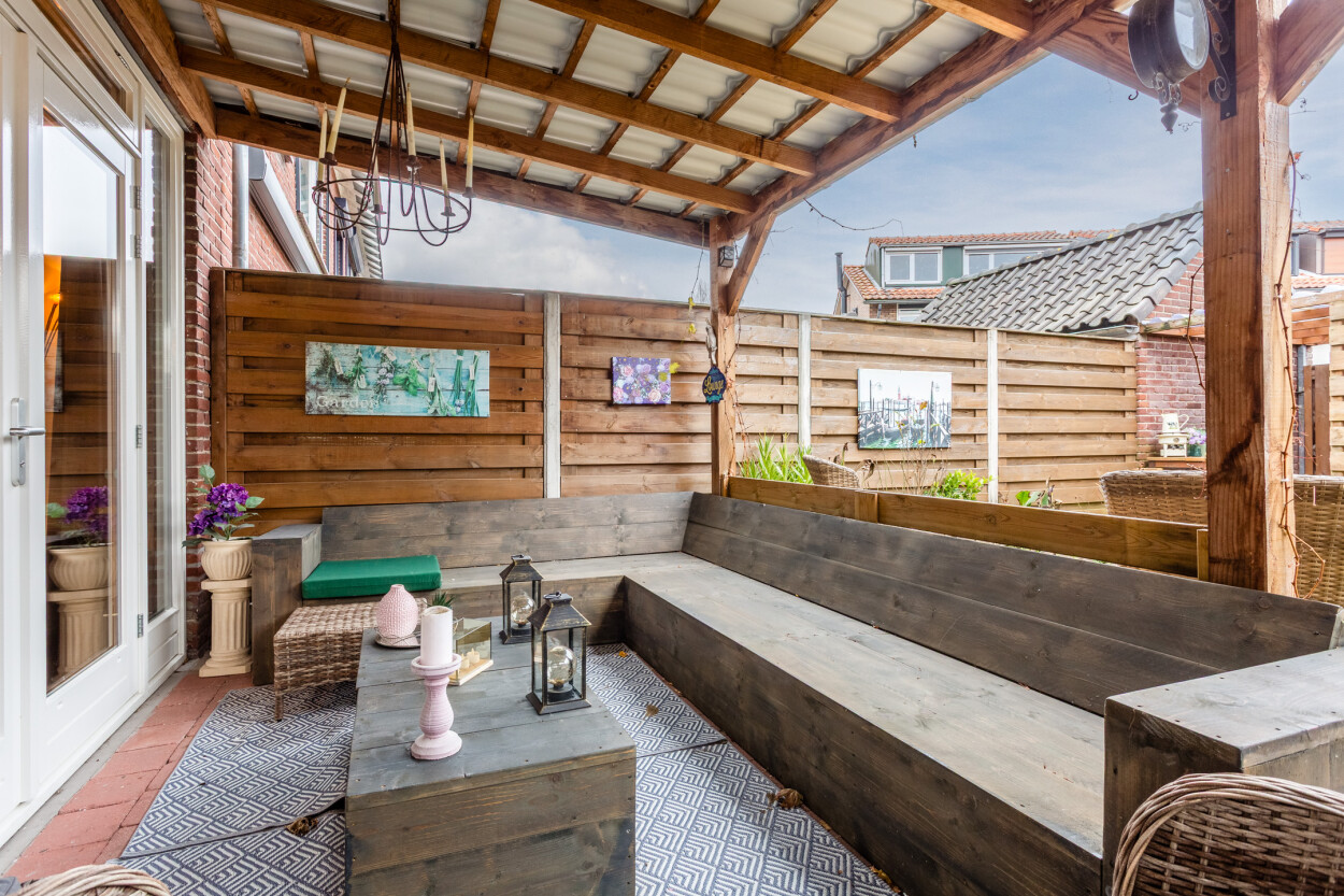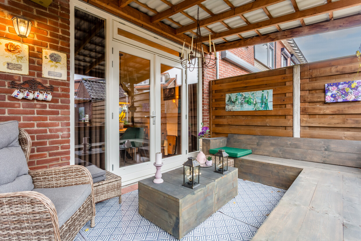 De achtertuin is een heerlijke plek om te ontspannen. Onder de veranda kunt u tot in de avond genieten van de zon die langzaam achter in de tuin ondergaat, een moment waar de huidige bewoners graag gebruik van maken na een lange dag.