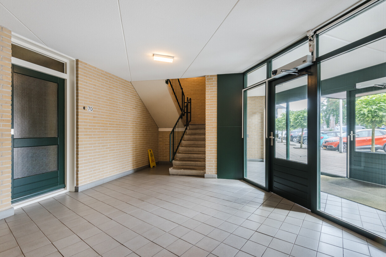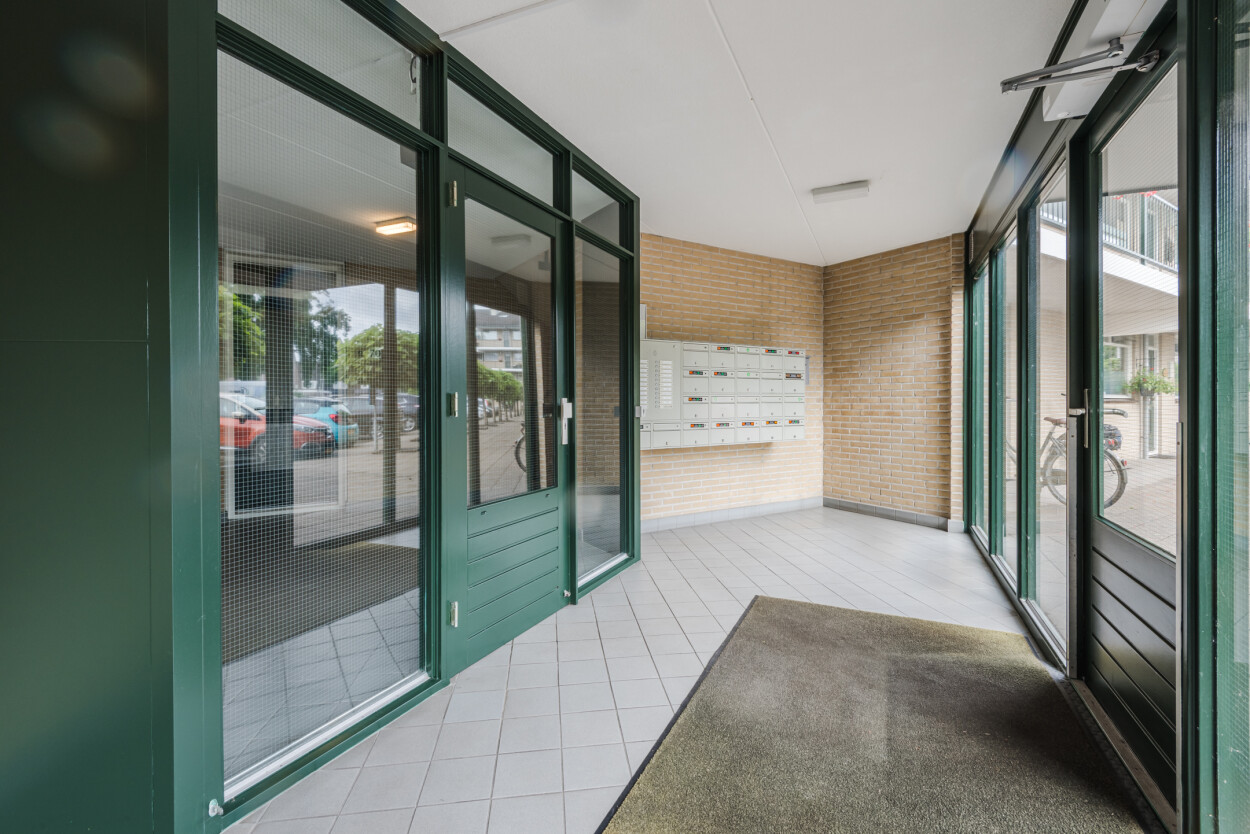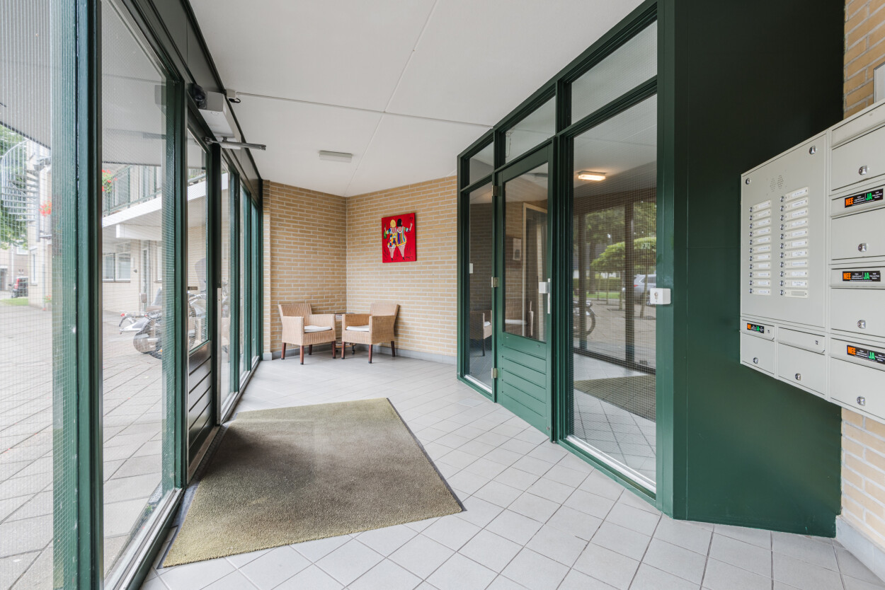 Via de centraal afgesloten entree met brievenbussen bereikt u het trappenhuis en de liftinstallatie.