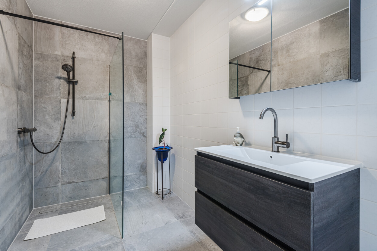 Op de eerste woonlaag ervaart u direct de moderne en lichte sfeer. De recent geplaatste keuken vormt, samen met de doorgebroken muur, een open en sfeervolle leefruimte waar koken, eten en wonen naadloos in elkaar overlopen. Daarnaast bevinden zich op deze verdieping twee slaapkamers en een gemoderniseerde badkamer, uitgerust met een stijlvol wastafelmeubel en een comfortabele inloopdouche.