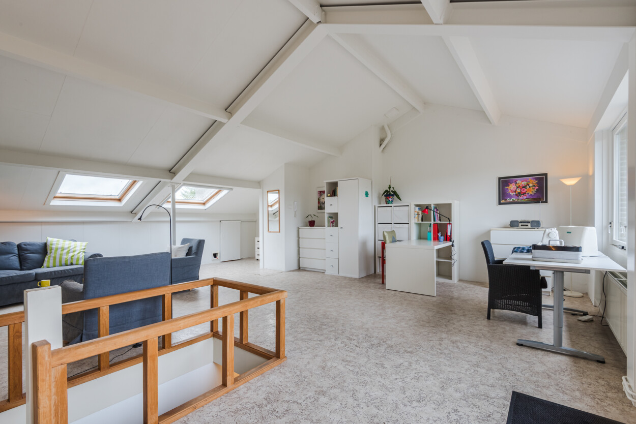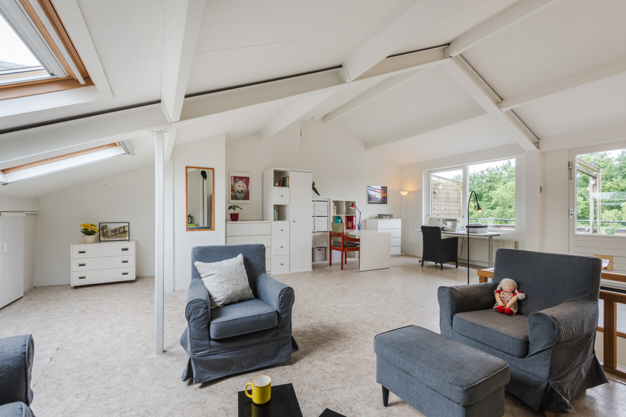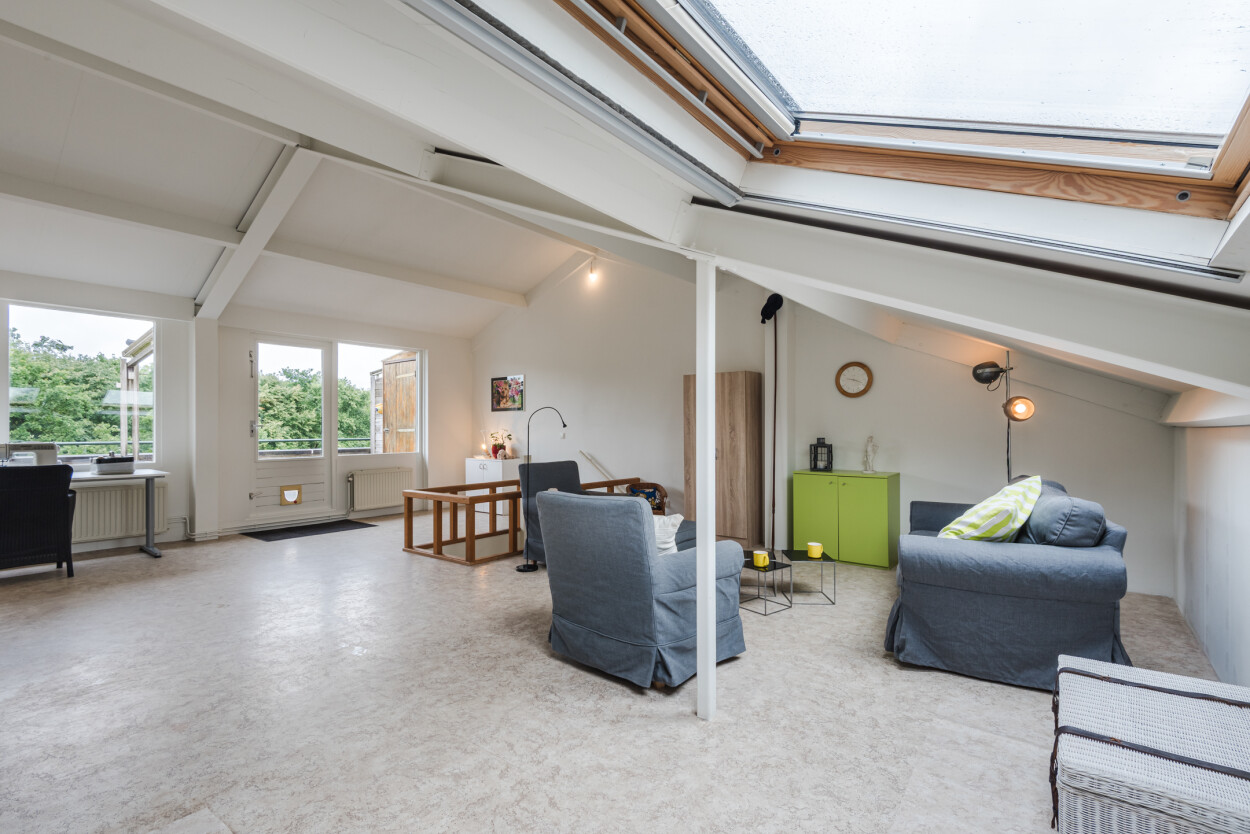 Een royale multifunctionele ruimte met hoge nok en volop daglicht. Deze open verdieping biedt de mogelijkheid om meerdere slaapkamers of een tweede woonkamer te realiseren. Hier bevindt zich tevens de opstelling van de HR-combiketel en de toegang tot het riante dakterras op het zuidwesten.