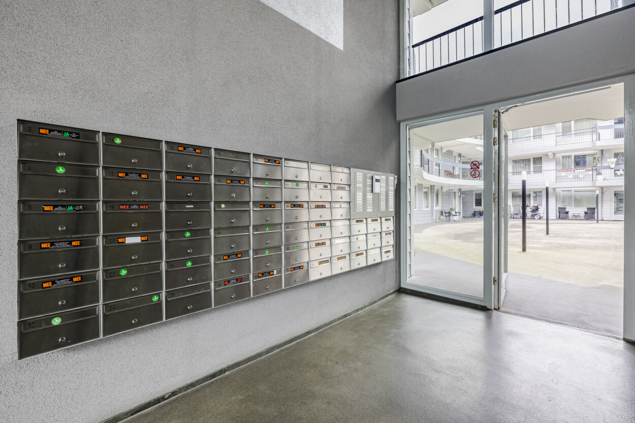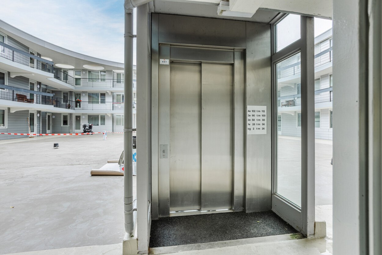 Het appartementencomplex beschikt over een verzorgde en representatieve hoofdentree aan de voorzijde van het gebouw. Bij binnenkomst treft u het bellentableau en de brievenbussen. Via de gezamenlijke binnentuin bereikt u zowel de liftinstallatie als het trappenhuis, waarmee alle verdiepingen eenvoudig toegankelijk zijn. Vanuit deze centrale ruimte heeft u tevens toegang tot de inpandige bergingen en de parkeerkelder. De afgesloten parkeervoorziening is exclusief bestemd voor bewoners van het complex en is bereikbaar via dezelfde liftinstallatie als het trappenhuis.