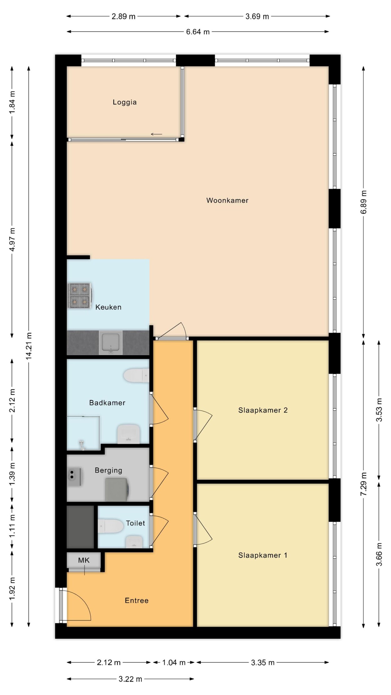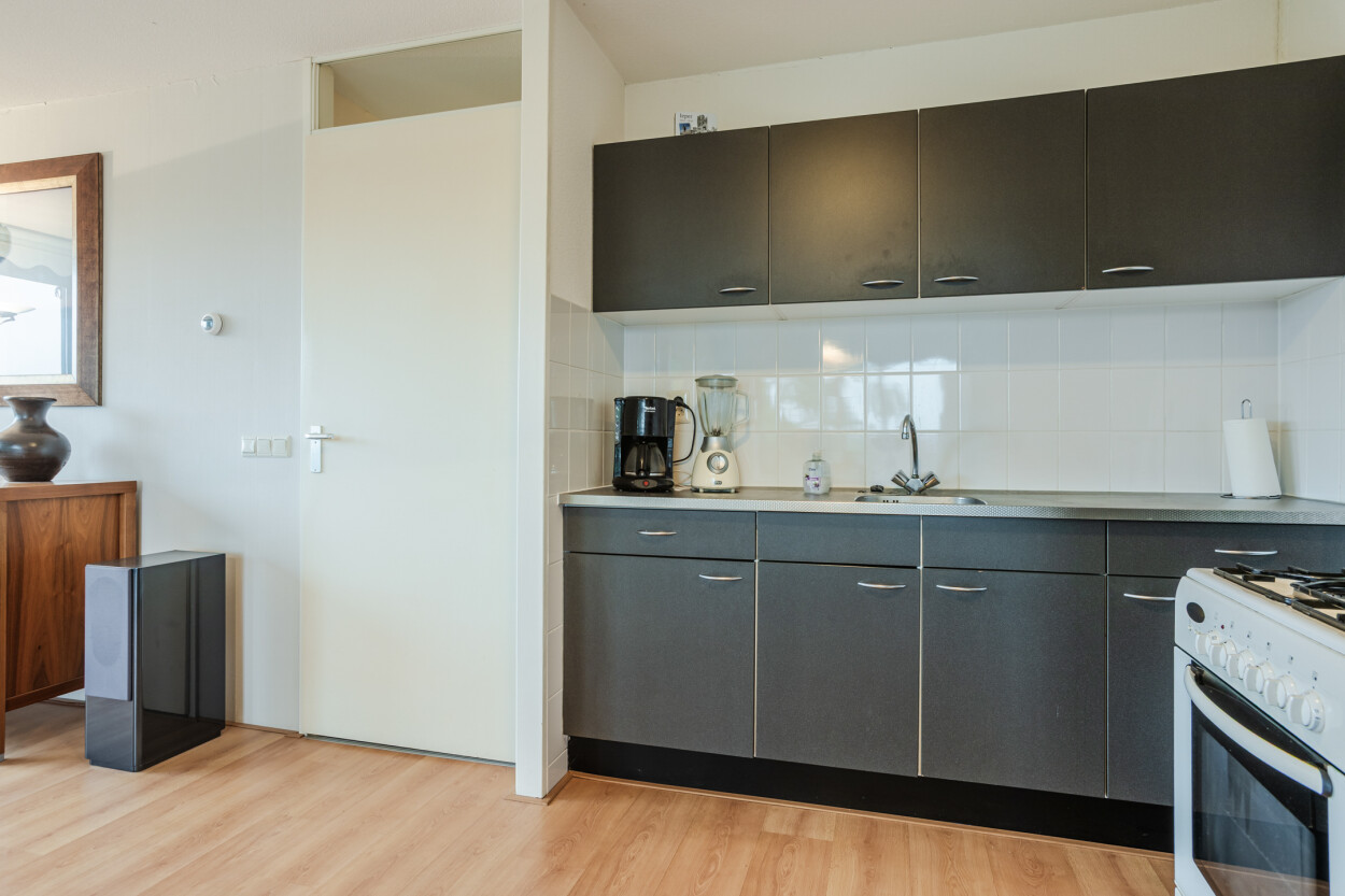 Dit lichte DRIEKAMER HOEKAPPARTEMENT op de tweede verdieping biedt een vrij uitzicht en volop daglicht dankzij de vele draaikiepramen. Het appartement beschikt over een woonkamer met open keuken, twee slaapkamers en een badkamer met douche en wastafel. De keuken en het sanitair zijn eenvoudig uitgevoerd, maar het appartement is goed onderhouden en biedt volop mogelijkheden om het helemaal naar uw eigen smaak in te richten.