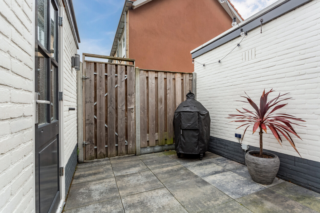 De woning beschikt over zowel een onderhoudsvriendelijke voor- als achtertuin. De voortuin ligt op het westen en de achtertuin op het oosten, waardoor er altijd wel een plekje is om in de zon of in de schaduw te zitten. Beide kanten hebben een vrije ligging met weinig directe inkijk, wat zorgt voor een prettig gevoel van rust en privacy.