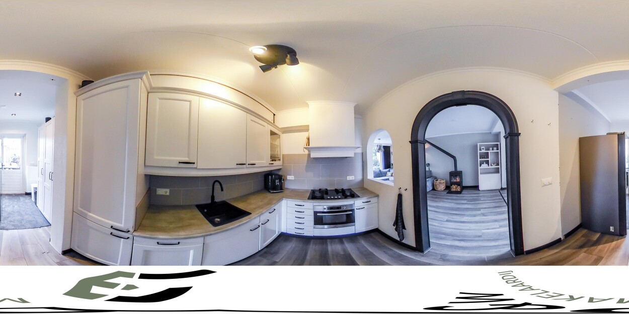 Entree/hal met toiletruimte en trap-/meterkast. Lichte doorzon woonkamer voorzien van een sfeervolle houtkachel. Aan de achterzijde is de woning uitgebouwd, waardoor een ruime eetkamer is gerealiseerd met prettig contact met de tuin. De halfopen keuken beschikt over diverse inbouwapparatuur en biedt voldoende bergruimte. Aangrenzend bevindt zich de praktische bijkeuken met achterom en aansluitingen voor wasmachine en droger.