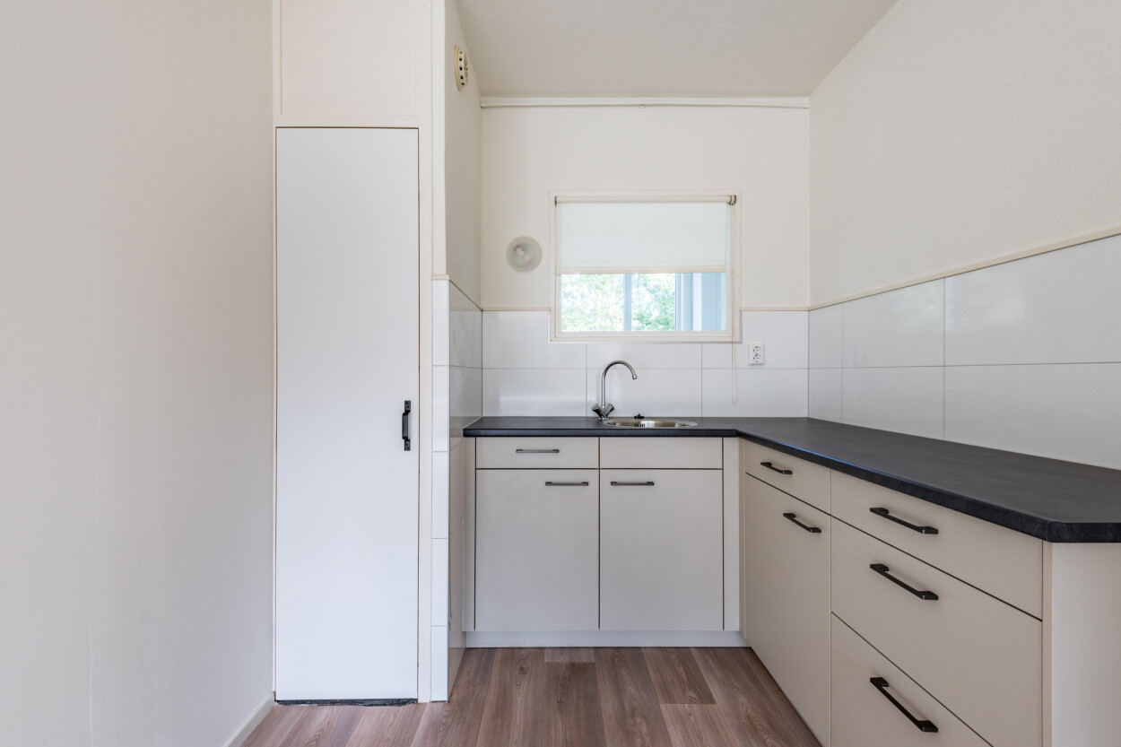 Het tweekamerappartement is praktisch ingedeeld, met korte loopafstanden. De lichte woonkamer en open keuken vormen samen een ruimtelijke en gezellige leefruimte. De grote slaapkamer, bereikbaar via de woonkamer, beschikt over een vaste kast en grenst aan het eigen balkon, zodat u hier in alle rust kunt slapen. Het ruime balkon is zowel via de woonkamer als via de slaapkamer toegankelijk. Vanuit de slaapkamer bereikt u direct de vernieuwde badkamer, die in verbinding staat met het eveneens vernieuwde toilet en de hal. Het keukenblok is modern en praktisch ingericht. Het appartement is voorzien van nieuwe vloerbedekking, wat bijdraagt aan een frisse en verzorgde uitstraling.