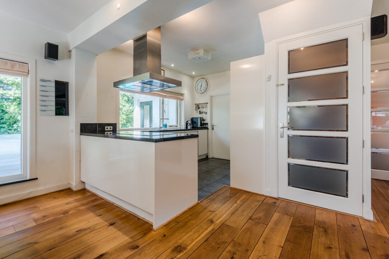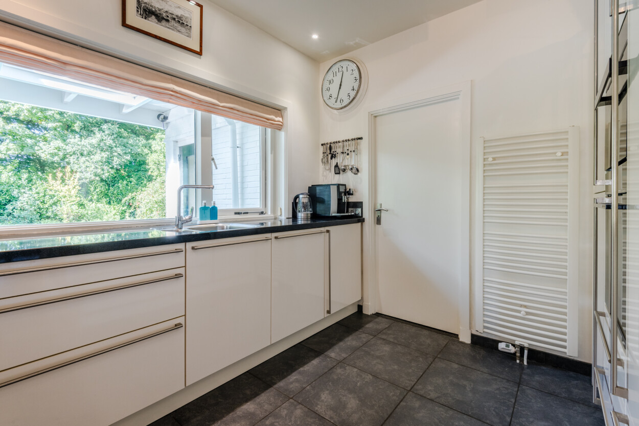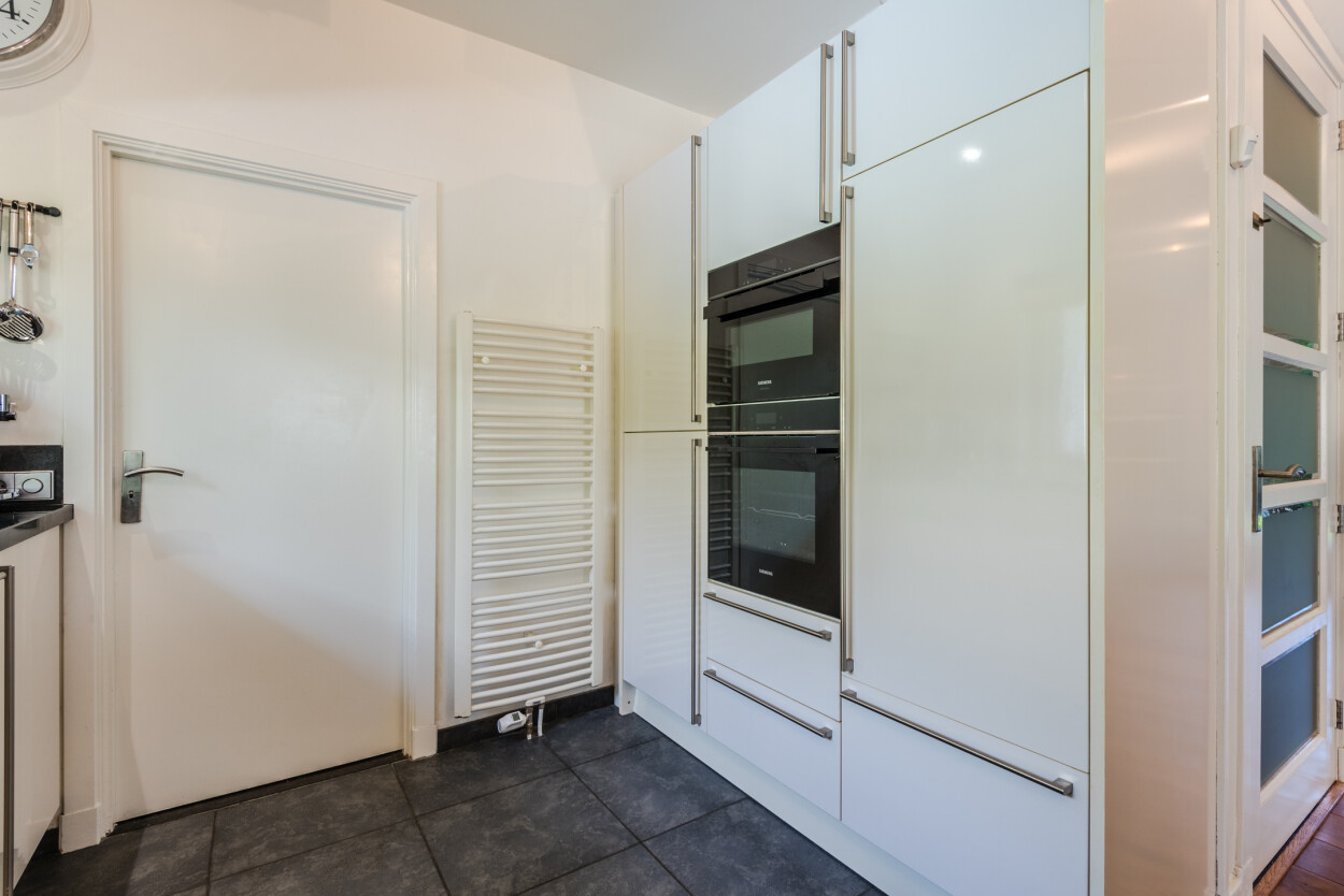 De keuken (2007) is centraal in de woning gesitueerd en biedt volop werk- en bergruimte. Alle inbouwapparatuur is in 2024 vernieuwd, waardoor de keuken weer helemaal up-to-date is. Vanuit de keuken bereikt u de bijkeuken aan de achterzijde met extra bergruimte en een aansluiting voor het witgoed (niet meer in gebruik). Aan de voorzijde van de woning bevindt zich een tweede bijkeuken. Deze praktische ruimte fungeert als was- en garderoberuimte en biedt plaats aan het witgoed, schoenen en jassen.