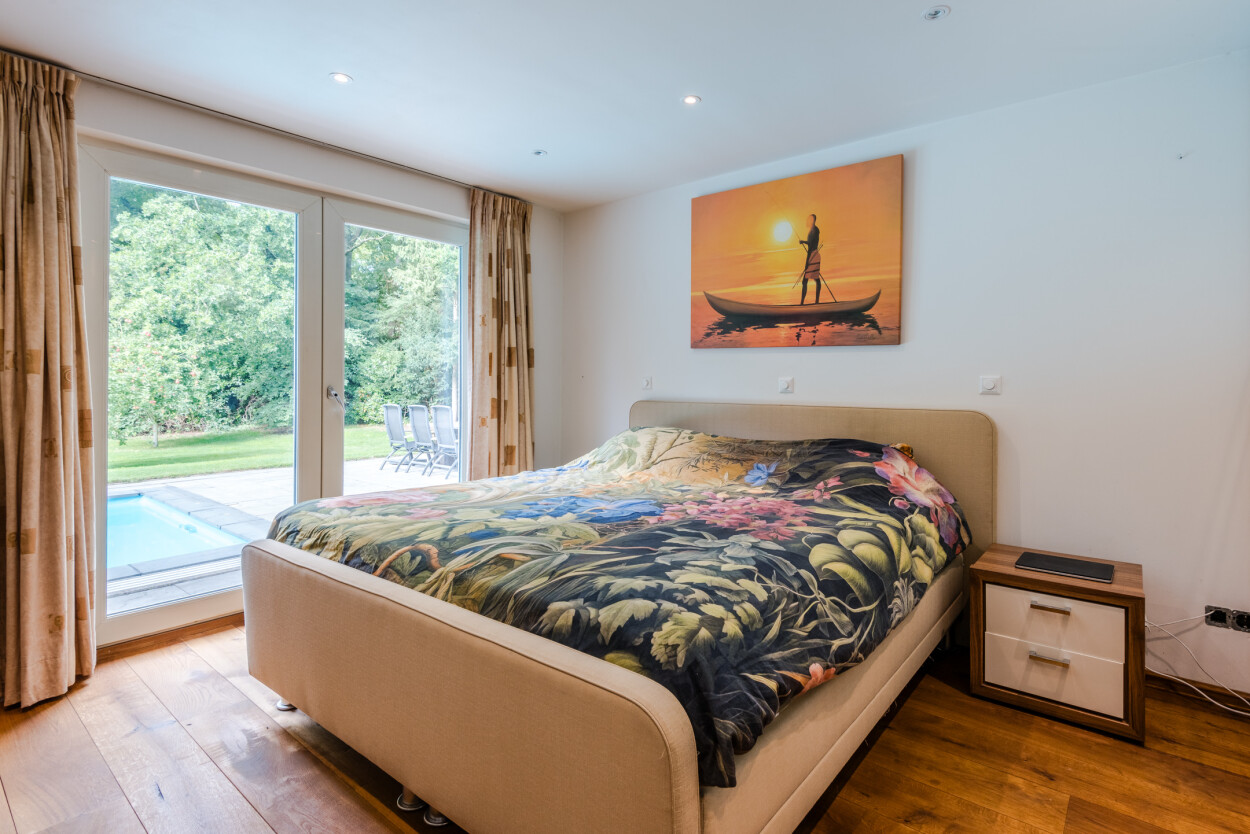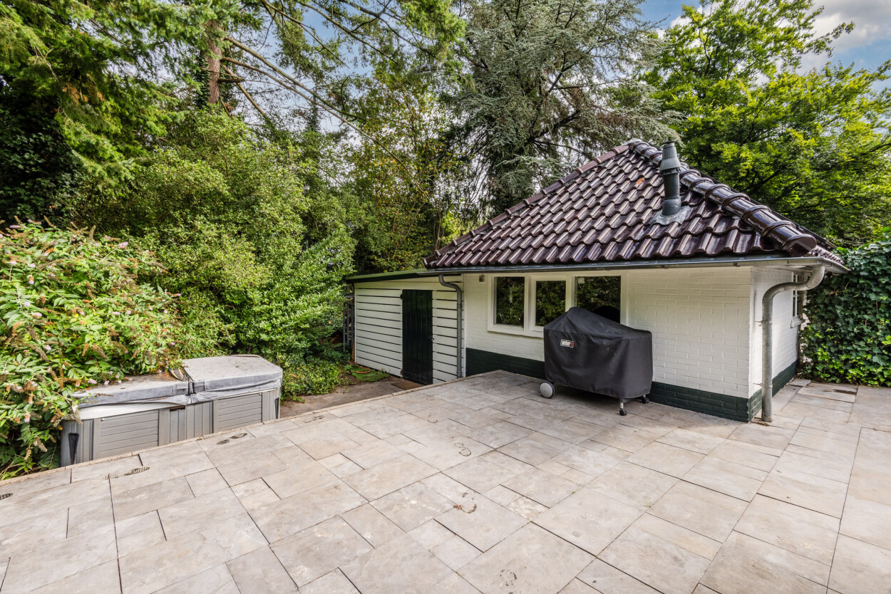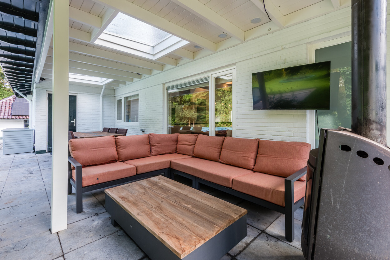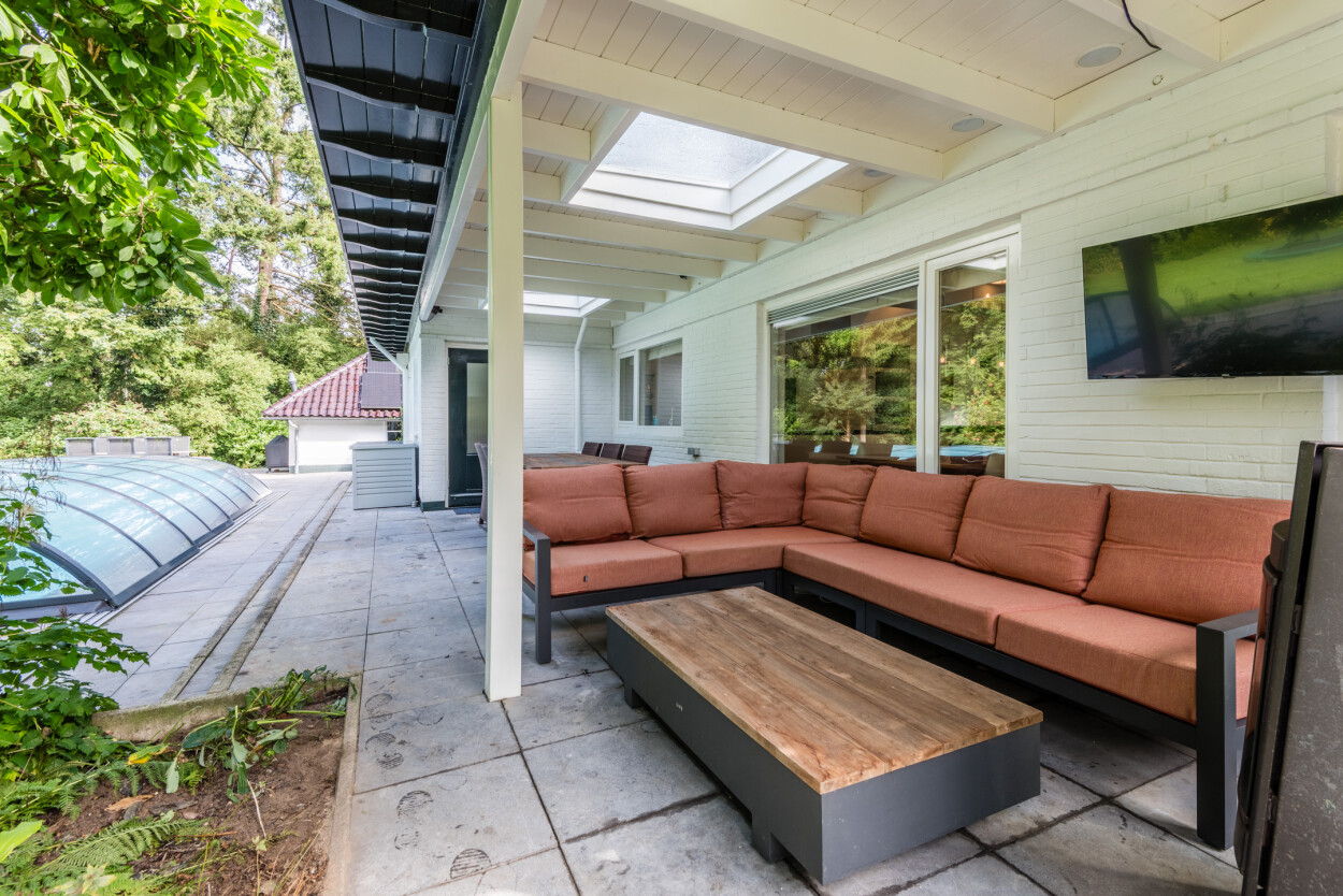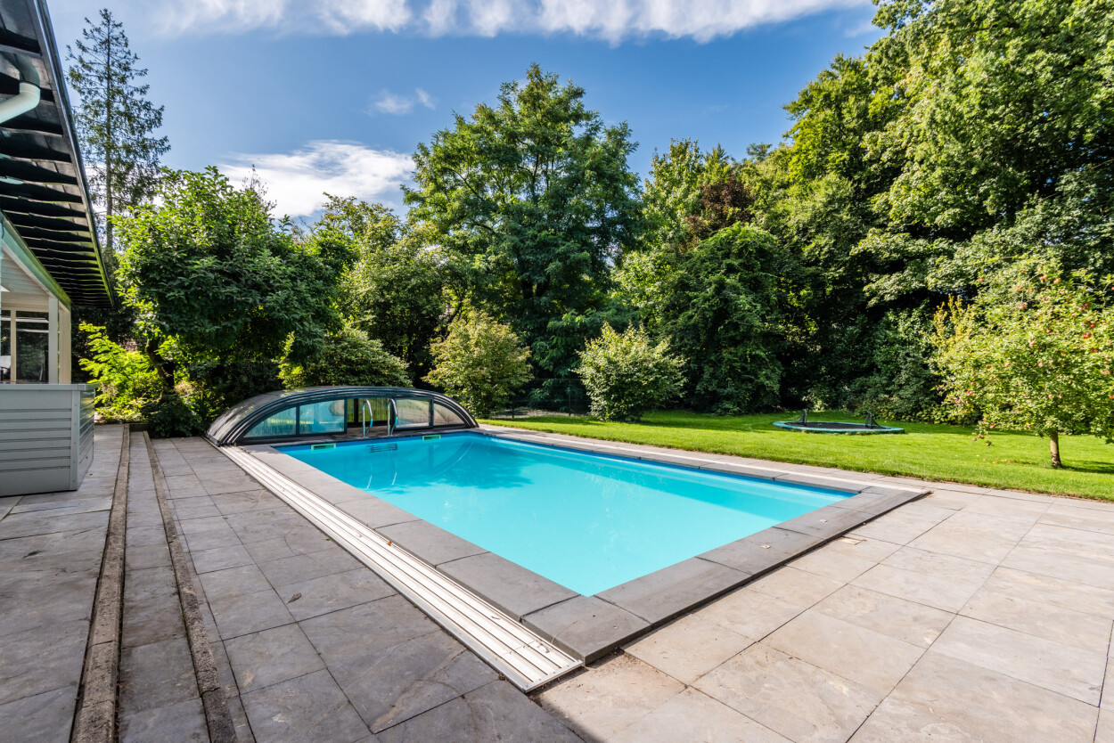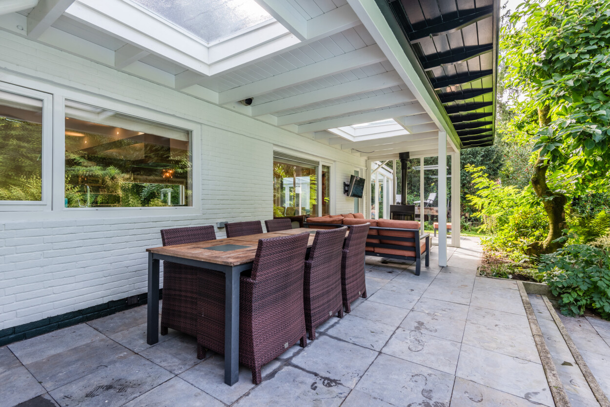 Aan de woning grenst een sfeervolle veranda met houtkachel, een heerlijke plek om het hele jaar door buiten te zitten. Verder is er een royaal verwarmd zwembad met jetstreamer en afschuifbare overkapping, omsloten door een fraai gazon met beplantingen en volwassen bomen. Dankzij de groene omzoming geniet u hier van volledige privacy en beschutting – absoluut geen inkijk, enkel rust en natuur.