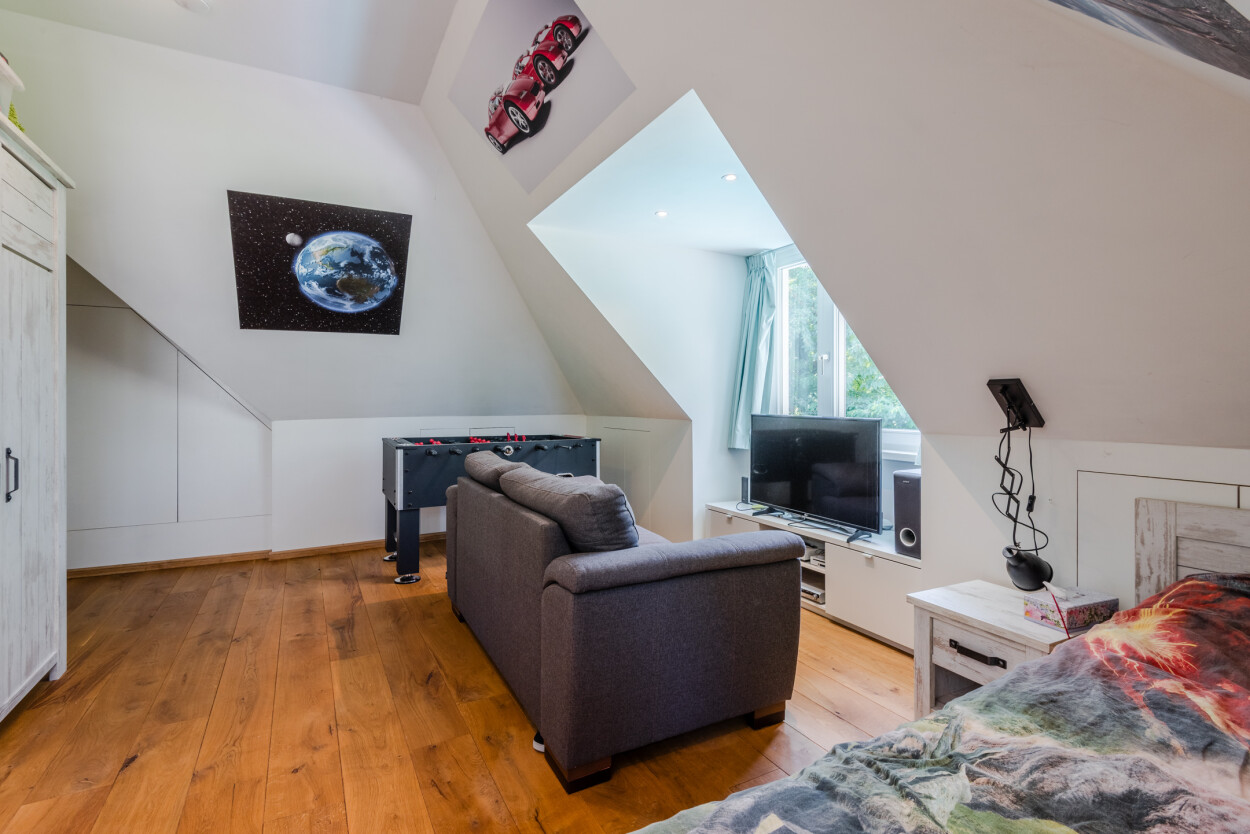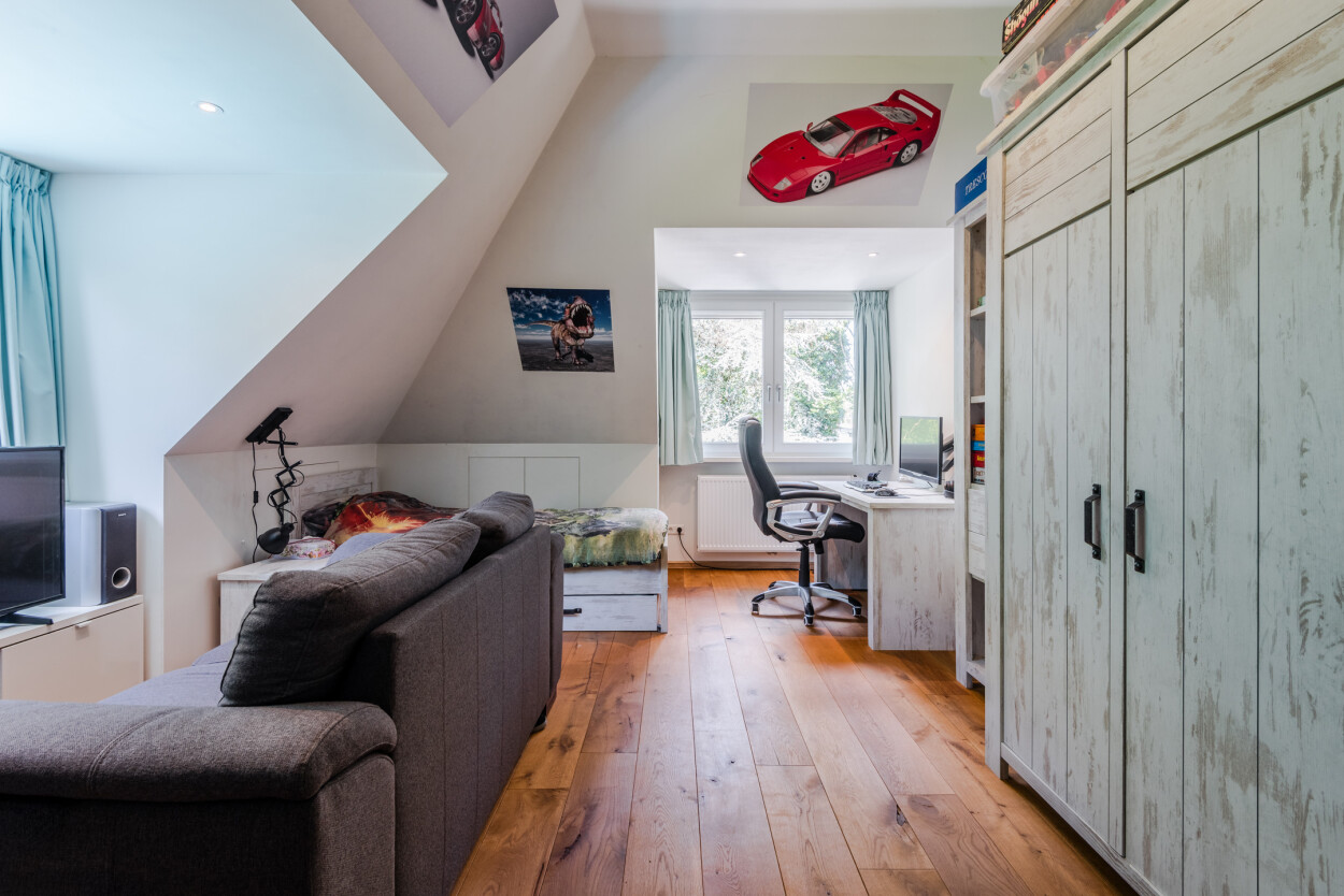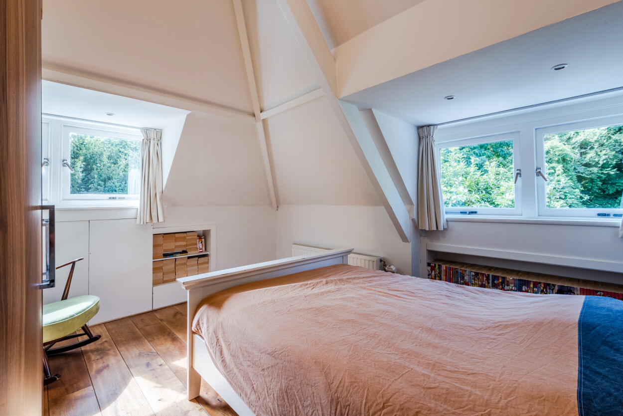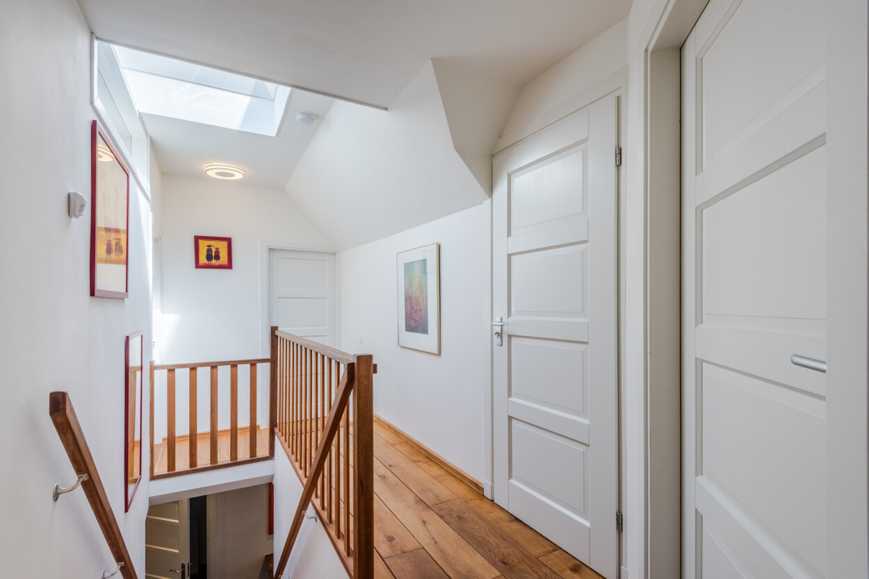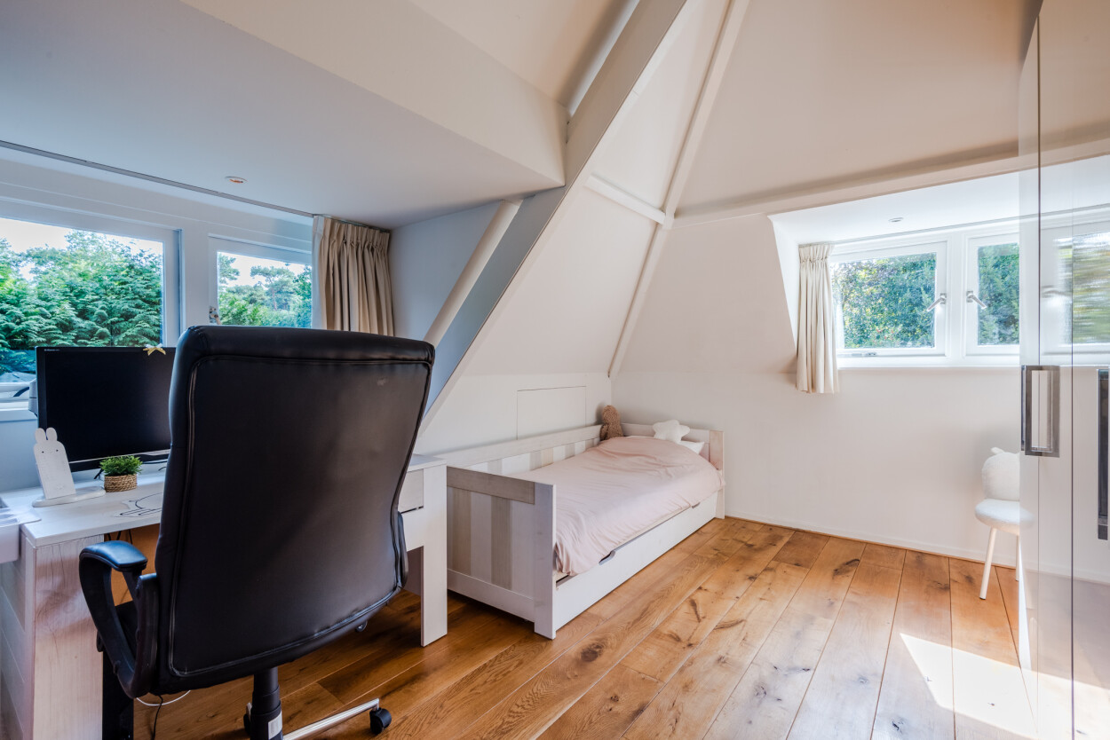 De eerste verdieping is voorzien van een sfeervolle houten vloer en beschikt over maar liefst vier slaapkamers. Dankzij de aanwezige dakkapellen zijn de kamers heerlijk licht en praktisch in te delen. Het rechter gedeelte van de verdieping is later bijgebouwd en biedt extra ruimte en flexibiliteit.