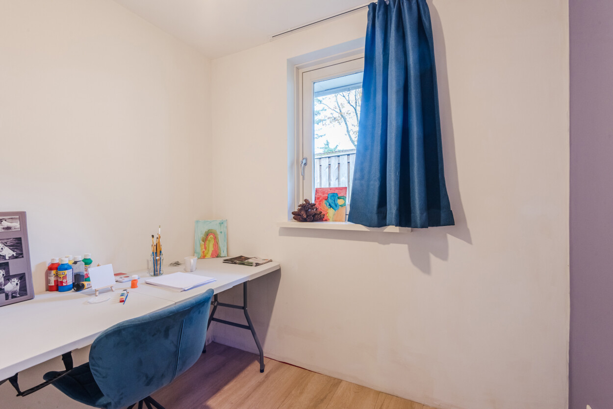 Binnen valt de lichte, moderne indeling direct op. Grote ramen laten het daglicht binnenstromen, terwijl de keuken uit 2021 volledig is uitgerust en uitnodigt om uitgebreid te koken of samen te ontbijten. Met twee slaapkamers boven en een kantoor annex kinder-(slaapkamer) op de begange grond is er volop ruimte voor uw gezin, werk of gasten.