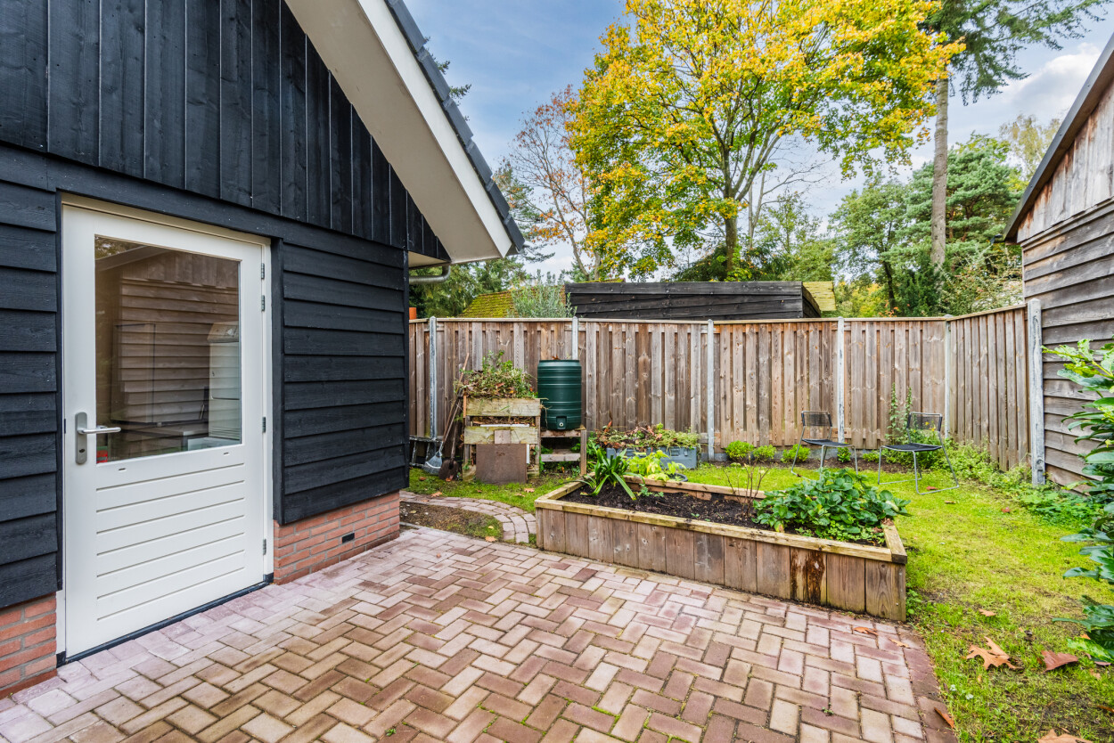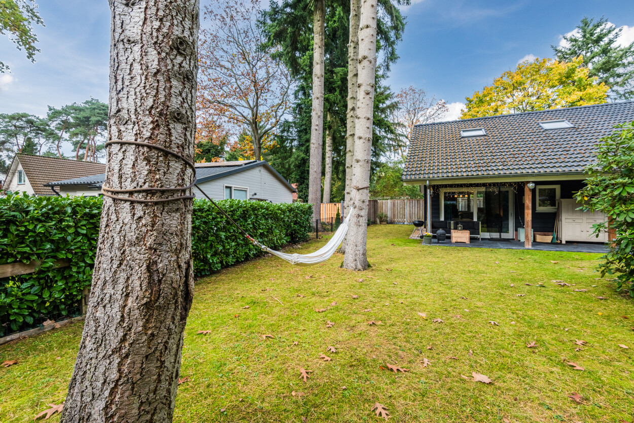 De woning beschikt over een keurig aangelegde voor-, zij- en achtertuin. De voortuin ligt op het zuiden en is fraai ingericht met diverse terrassen, grote bomen, beplanting en een verzorgd gazon. De achtertuin is een heerlijke groene en rustgevende plek; hier kunt u tussen de bomen een hangmat ophangen, genieten van het groen en er is zelfs een eigen plek voor een moestuin. Dankzij de overkapping aan de voorzijde kunt u bij minder weer comfortabel buiten zitten of het leven in de tuin verlengen naar binnen. De riante oprit biedt voldoende parkeergelegenheid op eigen terrein.