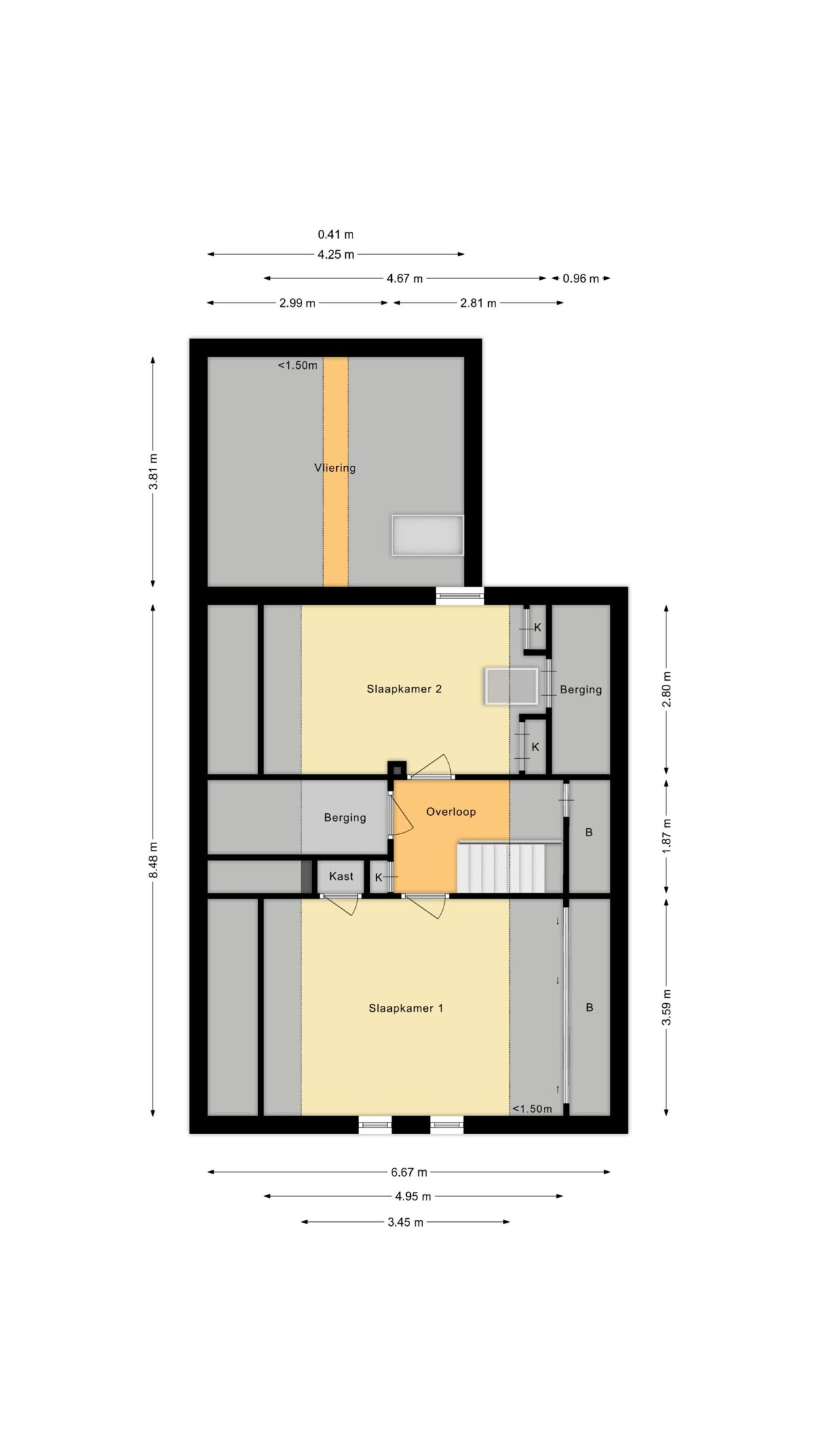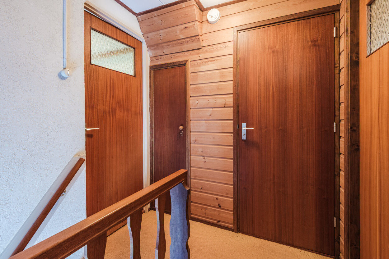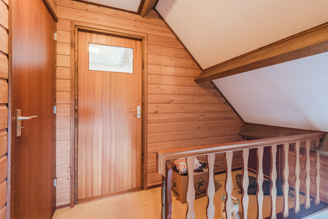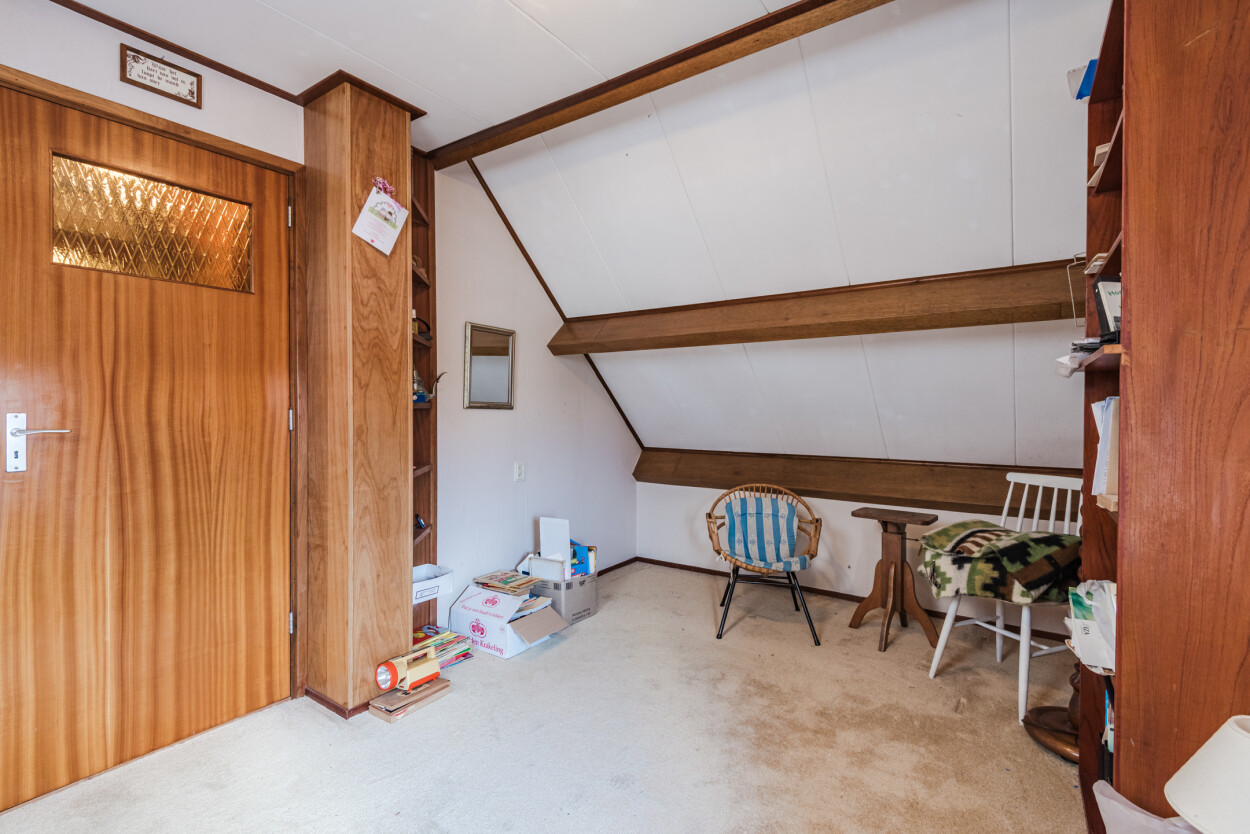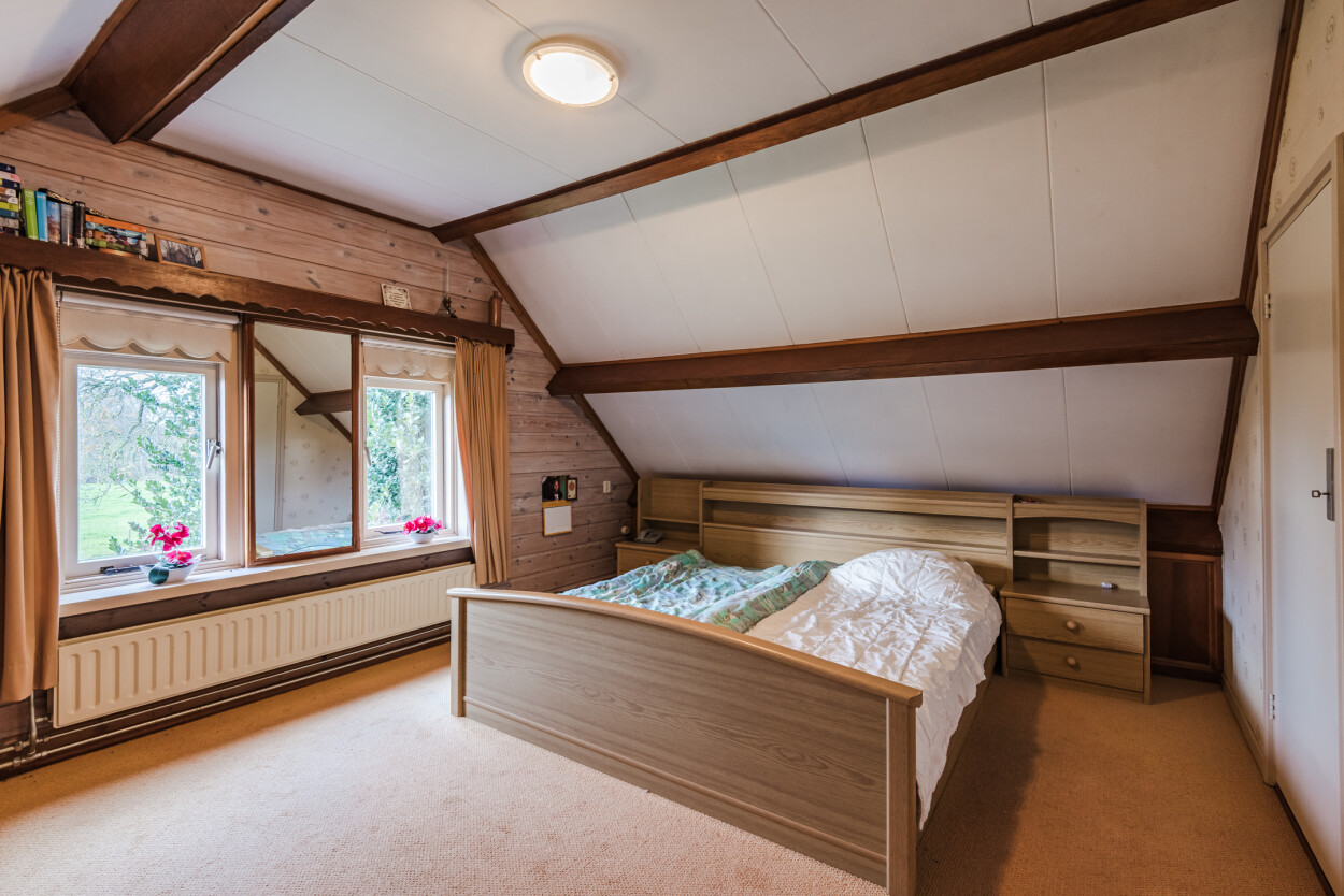 De ruime overloop biedt extra kastruimte en knieschotten. Op deze verdieping bevinden zich twee slaapkamers. De ouderslaapkamer aan de voorzijde heeft wederom een fantastisch uitzicht, een diepe kast en knieschotten. De tweede slaapkamer aan de achterzijde is voorzien van een vaste kast en knieschotten, waardoor er voldoende opbergruimte is.